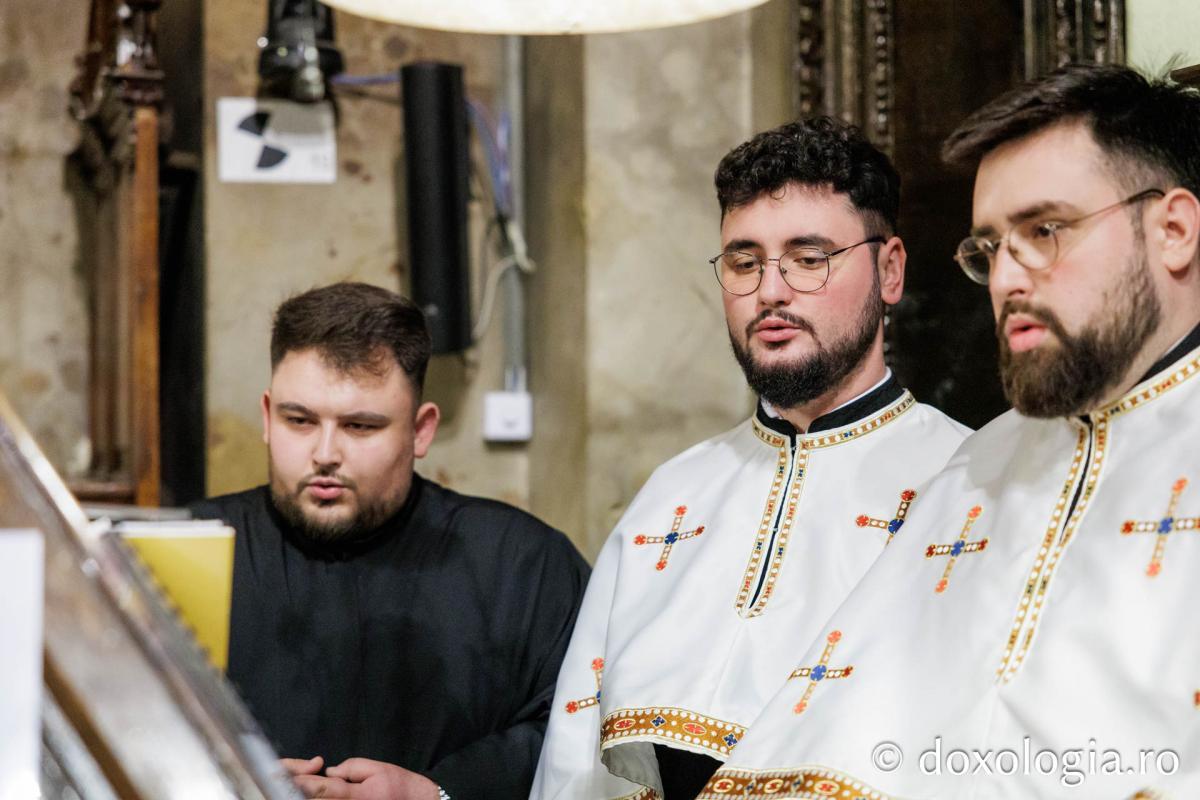 Răspunsurile la strană au fost date de Corul Chivotul „Chivotul” al Catedralei Mitropolitane și, respectiv, de Corul „Basileus” al Seminarului Teologic Ortodox „Sfântul Vasile Cel Mare” din Iași.